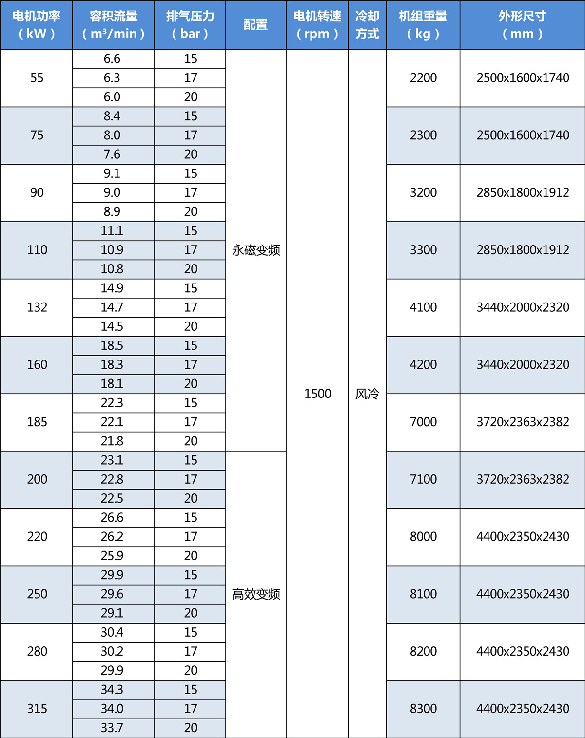 1、大轉(zhuǎn)子低轉(zhuǎn)速雙級壓縮低壓比高效率高可靠性;